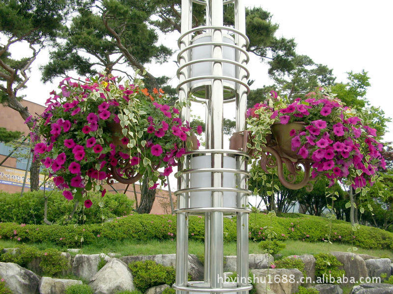 在燈桿上種植植物要考慮到諸多方面的問題,比如,如何在光滑的燈桿上安裝燈桿花盆,且牢固度要強。此外,安裝在燈桿上的植物,在陽光直射的情況下如何能保證不缺水等。